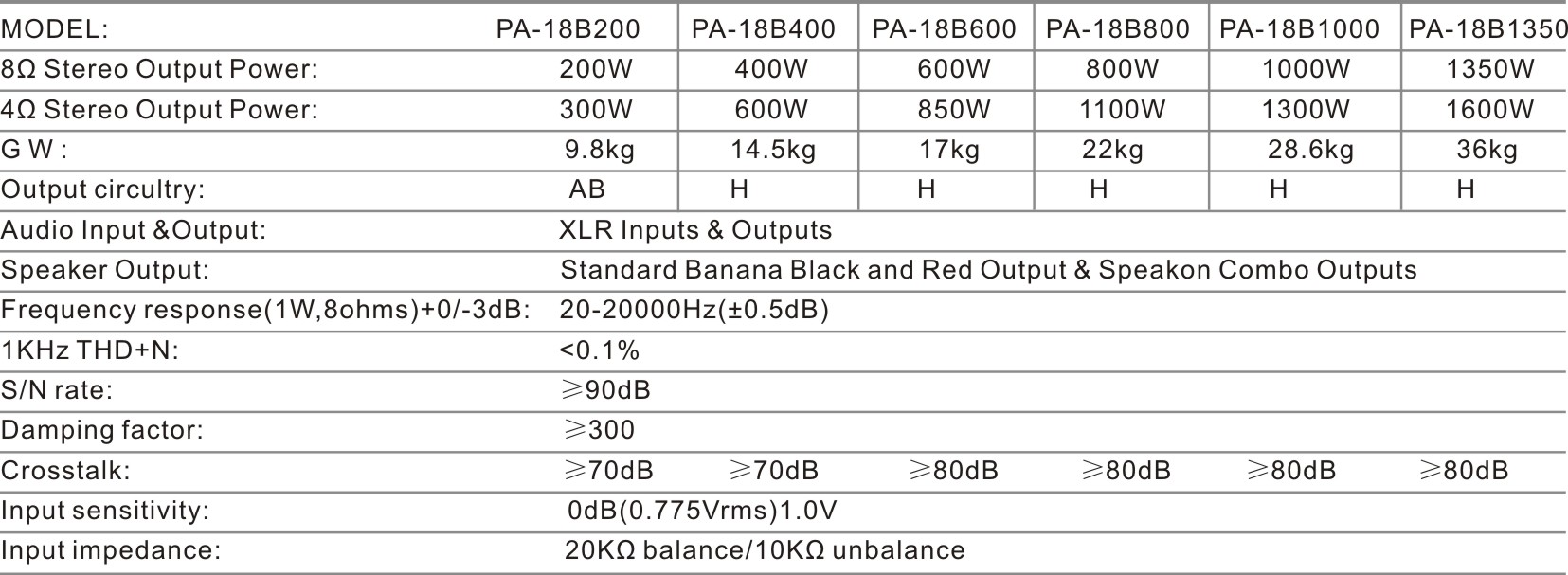 *Stereo Power ranged from 200W to 1000W each channel at RMS