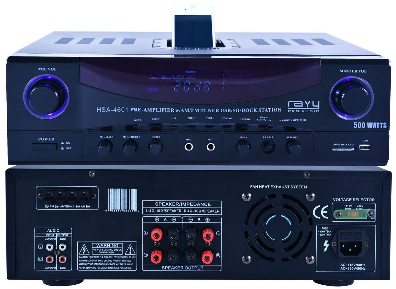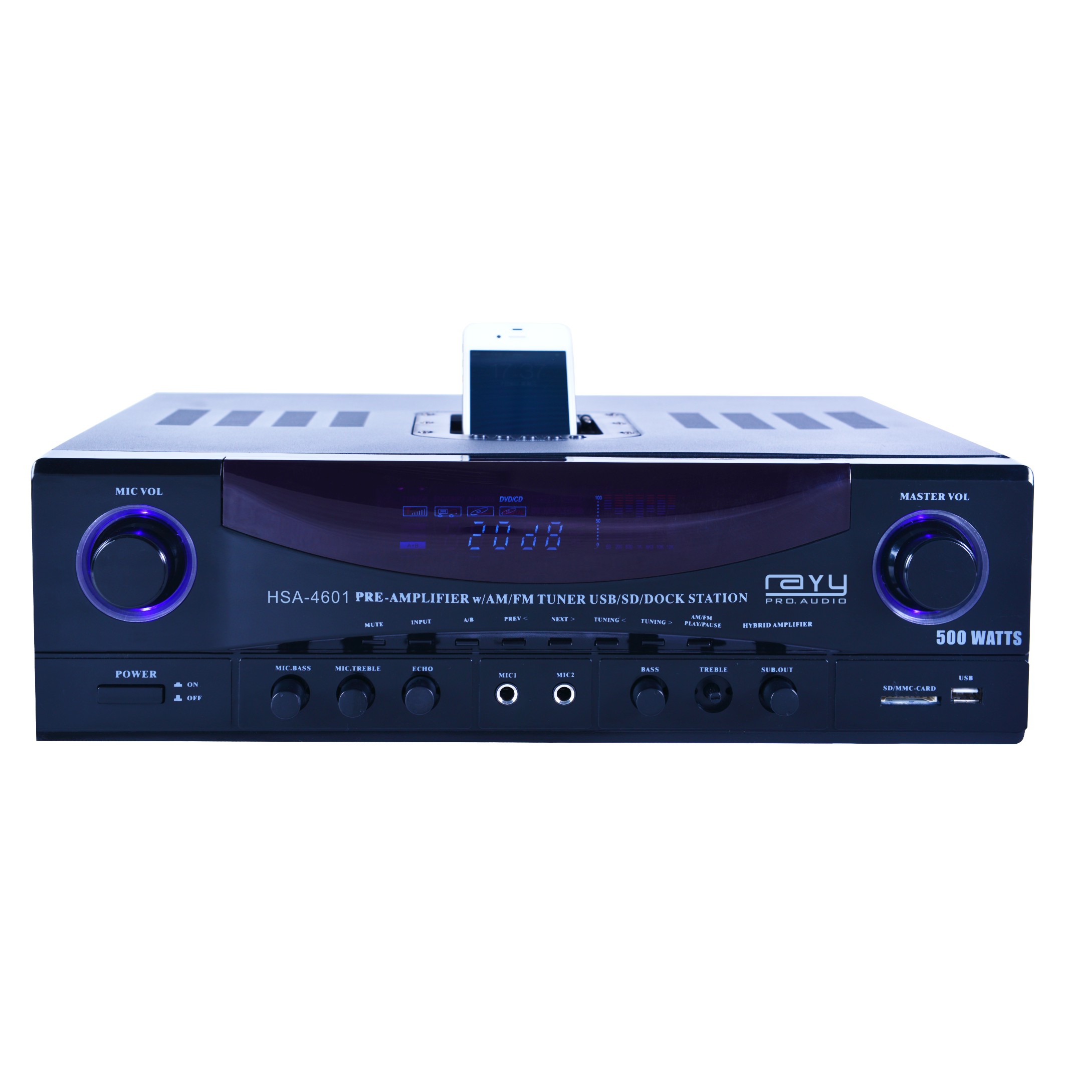 HYBRID STEREO RECEIVER AM-FM TUNER/USB/SD/IPOD DOCKING STATION & SUBWOOFER CONTROL