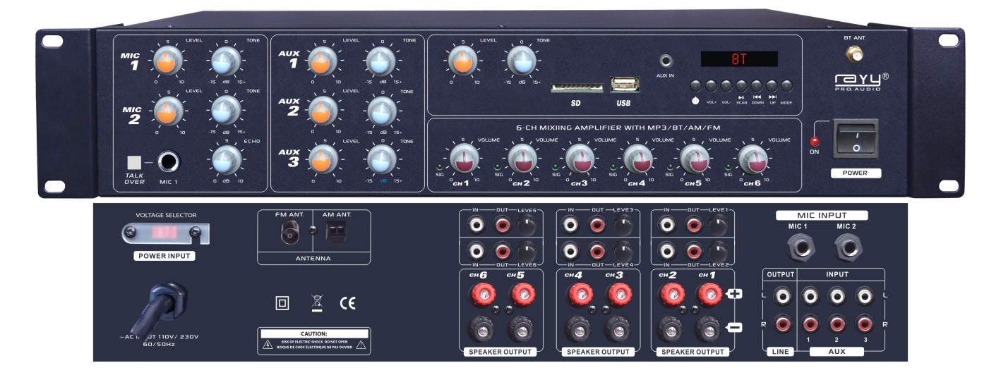 •MP3 (USB/SD) Player with separate Level/Tone Control