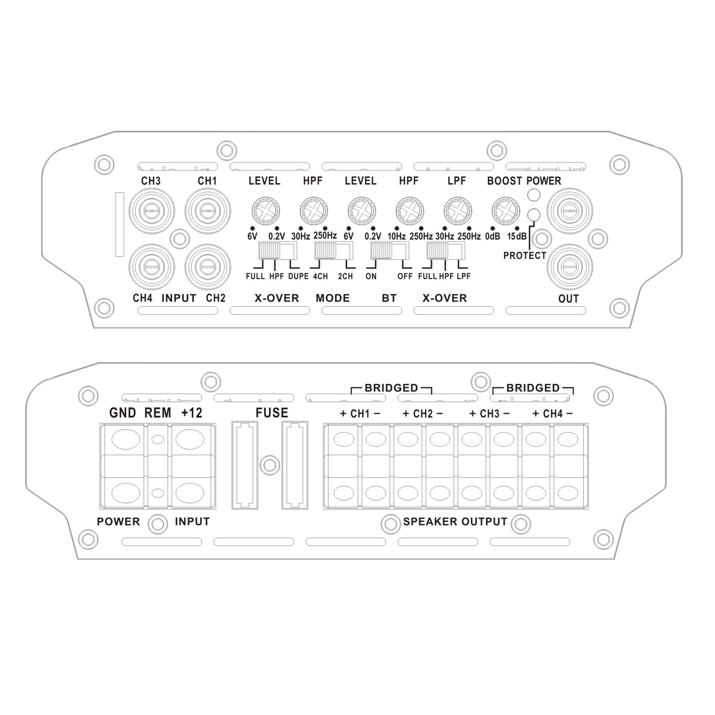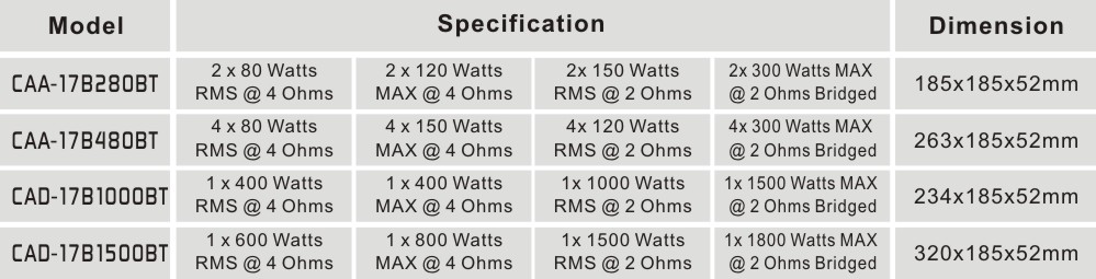 • Variable Bass Boost: 0-18dB Soft Turn On/Off