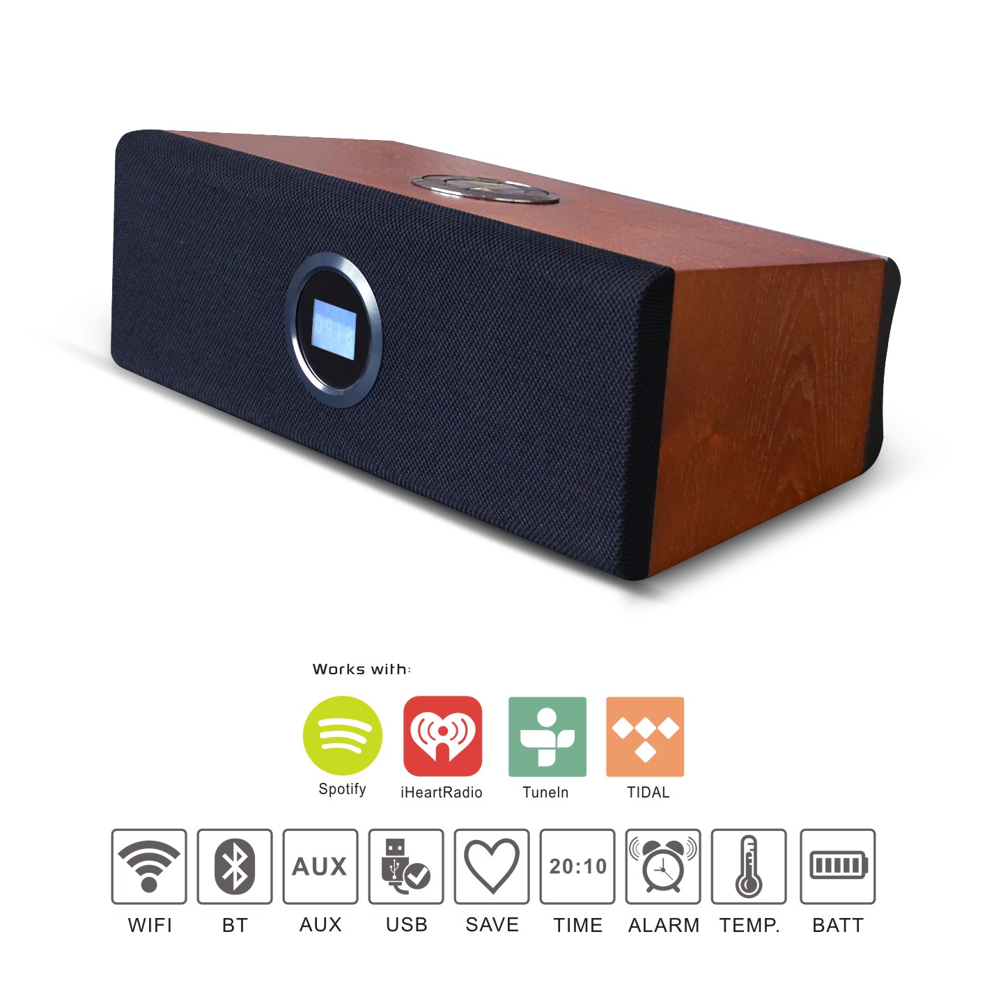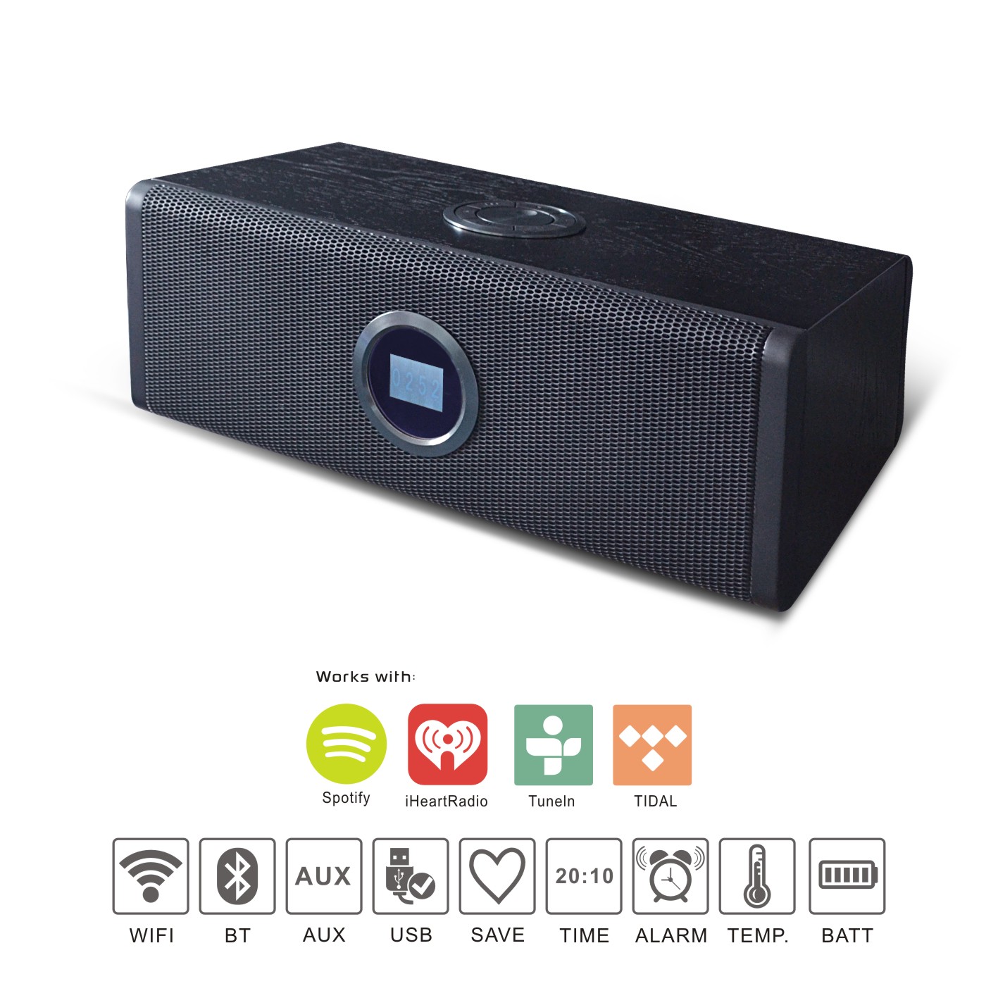 Wireless Smart Audio Speaker with WiFi+Bluetooth+ AUX + USB Play/Charge, and Multi Room Audio Speaker with Wi-Fi Control / Stereo Surround Compatible for Apple & Android, Spotify, iHeart Radio,Tuneln,TIDA.