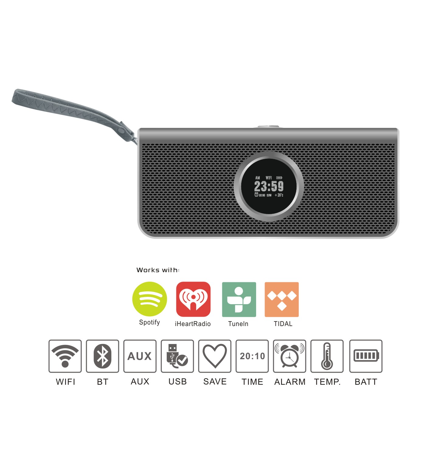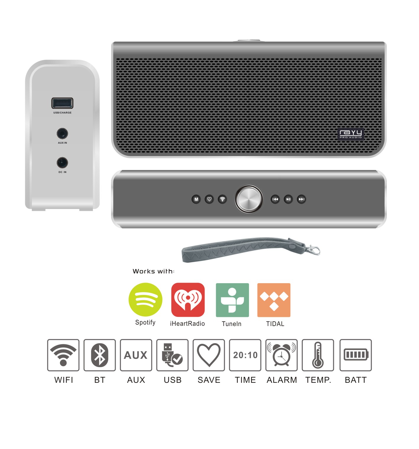 Wireless Smart Audio Speaker with WiFi+Bluetooth+ AUX + USB Play/Charge, and Multi Room Audio Speaker with Wi-Fi Control / Stereo Surround Compatible for Apple & Android, Spotify, iHeart Radio,Tuneln,TIDA.